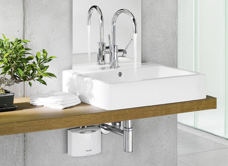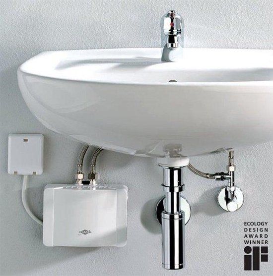 - Elektronisch geregelde doorstroomverwarmer (onderbouw) in miniformaat voor energiezuinige warmwatervoorziening bij een wastafel of in een pantry