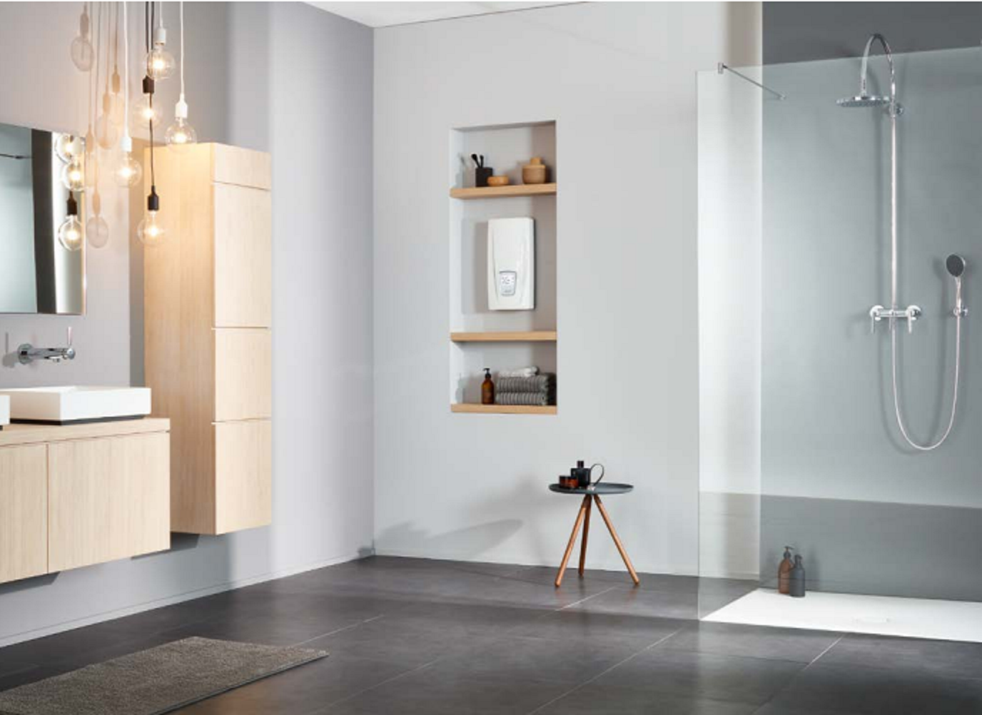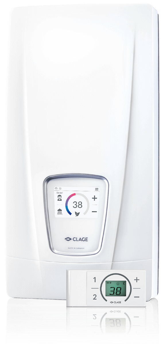 - Volledig elektronisch geregelde doorstroomverwarmer met touchscherm van echt glas voor gemakkelijke en zuinige warmwatervoorziening naar één of meer tappunten