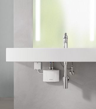 De elektronische kleine doorstroomverwarmer overtuigt met zijn kleine formaat en zuinige werking. Het water wordt terwijl het doorstroomt rechtstreeks verwarmd. Er wordt geen warm water gebufferd, en dat bespaart de energie die daarvoor nodig zou zijn.