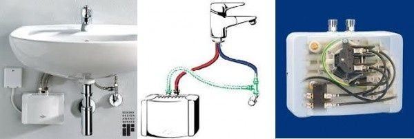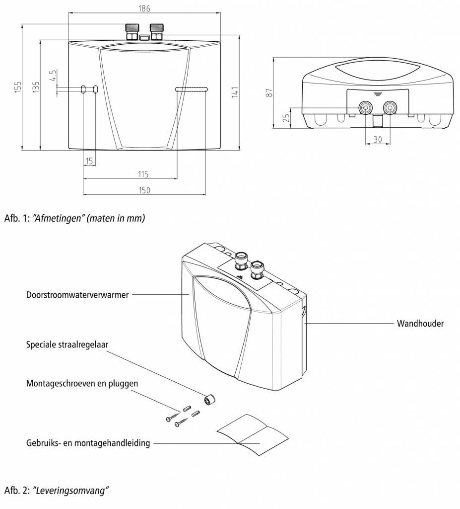 • Hydraulisch gestuurde doorstroomverwarmer (onderbouw) in miniformaat voor energiezuinige warmwatervoorziening bij een wastafel.